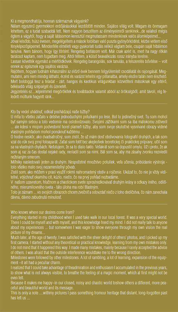 “Dear Reader! Please perceive the animals and plants on the next pages like things that live with us. Not below us, not for us. Next to us. It depends solely on us, what we see in the photos other than the spectacle. Please, do not look at them through the classical “good or bad”, “ugly or nice” filter, but first of all, try to see them. Notice the perfect, even where it is not obvious.”